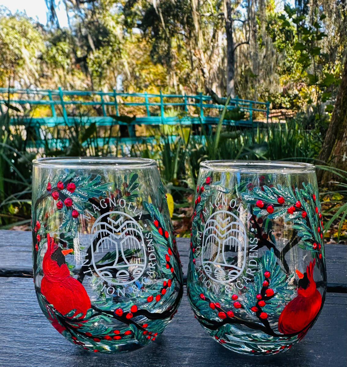 Learn to paint winter cardinals on your own set of stemless wine glasses in the gardens of Magnolia on Saturday, December 27th from 1PM – 4PM. Join us at the Magnolia Workshop for a class with local artist Kristen Cauble-Morse with refreshments, art, and fun!